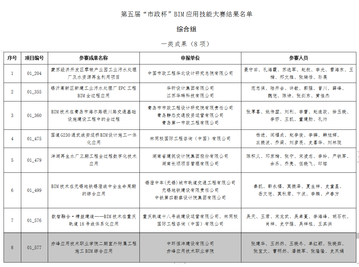 公司在第五屆“市政杯”BIM應用技能大賽中獲得綜合組一類成果